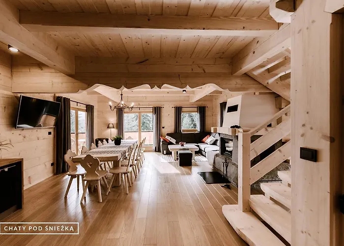Die 6-Zimmer- Chaty Pod Sniezka liegt in ungefähr 4 km Entfernung von Skalny Stół und bietet seinen Gästen die Möglichkeit, sich in der Umgebung beim Wandern und Skifahren zu vergnügen. Diese Villa in Karpacz verfügt über private Parkplätze und eine Terrasse mit Aussicht auf die Berge.
